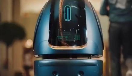这台1分35秒左右出现的小机器人,是阿里巴巴人工智能实验室自主研发的服务型机器人首次在全世界面前亮相。