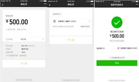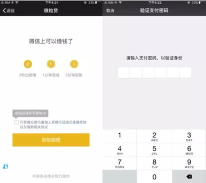 第二步:以微信为例,依次跟着提示点击 “我-钱包-微粒贷借钱”进入微粒贷,出现以下界面。