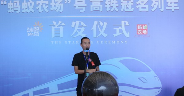 2018年9月25日,由“蚂蚁农场”大麦若叶青汁冠名的高铁专列在湖北武汉举办首发仪式。沐熙集团CEO王栋先生、总裁林赵芳婷女士、蚂蚁农场优秀代理商及众多媒体出席参加了本次的首发仪式。