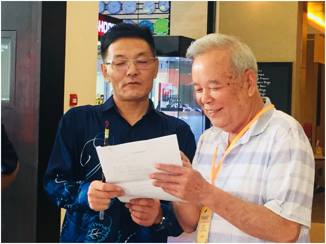 活动现场,在程总领事、本固鲁陈、沈坚石主席等领导同时见证下中国赛飞商学院执行院长钱会文先生向砂州艺术文化与手工艺品协会会长吴得瑜授予了赛飞创业导师海外基地的牌匾。