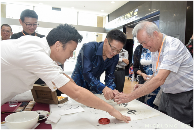 开幕式上,程广中总领事表示,中国书画是中华文化的国粹,用传统的中华文化区搭建双边经济文化往来是最棒的选择。中方代表团总顾问吴应辉先生感慨的说,没想到在外邦居然有这么多的华人能把中国的传统文化传承得如此好:拿督林老先生厚重的颜体楷书,张文光先生雅致的国画花鸟小品以及多位艺术家诗味浓郁的诗词,觉得特别亲切,还以为身在国内。吴老先生随即兴赋诗一首:月自东方上,我从古国来。重逢砂拉越,共咏赛诗台。秋水马来女,谪仙古晋才。为君歌一曲,美酒莫停杯。 砂州古晋影视和出版协会会长David