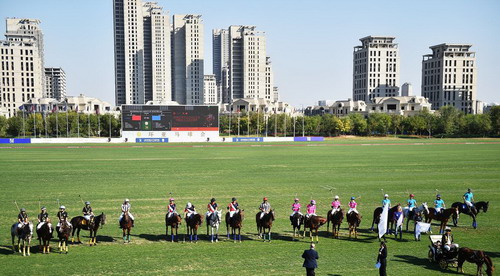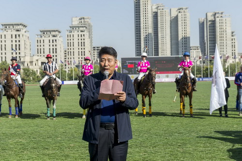 天津妇女儿童发展基金会 秘书长 黄春华先生致辞并为赛事开球 本次参赛的四支队伍分别是:I DO 1003 Polo Team、INTREPIDA Polo Team、EB Communications Polo Team、Shangri-La Polo Team,这些女性马球手分别来自中国、阿根廷、英国、美国、加拿大、德国、迪拜等地,她们赛场上的英姿和赛场下的柔美形成强烈反差,这是女子马球比赛相较其他马球赛事最大的亮点。