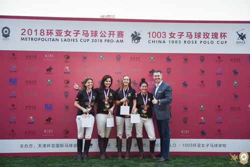 颁奖仪式上各球队与颁奖嘉宾合影 本次赛事由天津环亚国际马球会与1003 Polo共同打造的1003环亚女子马球学校隆重推出,旨在打造专业女子马球IP赛事。搭建中国和世界女子马球文化的桥梁,从而推广中国女子马球文化,通过女子马球IP赛事影响更多的新精英女性参与到这项运动中来。