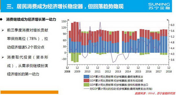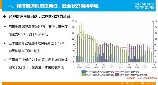 10月19日,国家统计局发布2018年中国经济“三季报”。根据最新出炉的经济数据,苏宁金融研究院10月22日发布《2018年三季度宏观经济形势分析与未来展望》(下称“报告”),本报告由该院宏观经济研究中心主任黄志龙撰写。黄志龙在报告中指出,三季度经济增速创历史新低,受基建投资快速下滑拖累,固定资产投资持续低迷,居民消费继续成为经济增长稳定器。他预判,2018年中国全年GDP增速将在6.6%-6.7%,超过年初确定的6.5%预期目标,而减税或将成为积极财政政策的优先方向。 数据显示,前三季度GDP增速为6.7%,其中三季度增速为6.5%,创十年来新低;服务业增速保持高位(7.9%),为经济增长的第一动力;工业部门为主的第二产业增速持续回落(5.3%),创近三十来历史新低;固定资产投资增速累计为5.4%,保持低位增长态势;货币政策宽松,存款准备金连续下滑,降至近十年新低,基准利率没有跟随美联储加息,保持历史低位水平。 “居民消费成为经济增长稳定器,但回落趋势隐现。”报告认为,消费取代投资,继续扮演经济增长的第一动力。前三季度,消费对经济增长贡献率为78%,继续保持高位,拉动经济增速5.2个百分点。值得注意的是,9月份,汽车类消费创历史新低,增速仅为-7.1%,汽车销量也大幅衰退11.6%,成为社会零售低迷的主要原因。 黄志龙在报告中指出,出口增长保持平稳,但前景值得担忧。前三季度,中国进出口累计总额3.43万亿美元,其中出口1.83万亿美元,进口1.6万亿美元,同比增速分别为15.7%、12.2%和20%,超出市场预期。不过,贸易战等国际上不确定因素,将让出口前景不容乐观。 “减税或将成为积极财政政策的优先方向。”黄志龙认为,一系列减税政策陆续落地,让公共财政收入和税收收入增速持续回落。在他看来,短期内全面减税面临税率变动可操作性和刚性支出两大难题。未来,房产税、投资所得税等直接税将是加税重点,而增值税、消费税、关税等间接税则有减税空间。 黄志龙在报告的最后预判,2018年中国全年GDP增速将在6.6-6.7%,四季度增速或会惯性下滑到6.4%左右,但2019年将重新企稳回升。四季度,固定资产投资将上涨,但居民消费将持续下滑,出口增速将见顶回落。此外,宽货币、紧信用的困境将得以缓解,财政政策将更加积极。 中国首席商业资讯门户;更多内容请关注中国商业网各频道、栏目资讯。 免责声明:凡本站注明 “来自:XXX(非中国商业网)”的新闻稿件和图片作品,系本站转载自其它媒体,转载目的在于信息传递,并不代表本站赞同其观点和对其真实性负责 。 |