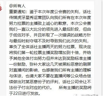 在得知消息后包括主播心情、轩子巨2兔在内的一众大牌主播和土豪观众纷纷赶来豪刷礼物,想要追上落后的礼物。但无奈时间已经严重不足,还没等主播心情将号里的二十多万礼物刷出去,比赛就结束了。最终话社公会仅以一万人民币的差距,遗憾错失了进入八强的最后机会,彻底告别本年度虎牙巅峰公会战。
