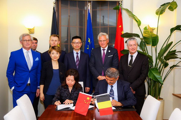阿里巴巴集团与全球最大钻石交易中心安特卫普钻石交易中心(AWDC)签约合作。签约人为AWDC主席Nishit parkih(前排右一)与天猫服饰总经理尓丁(前排左一)