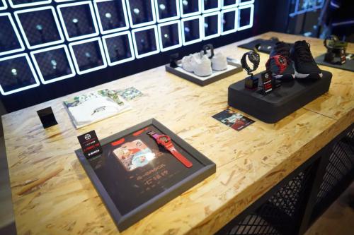 LOGO 中标红的 G 是这个空间最重要的元素,也就是 G-SHOCK 独有的文化精髓。G 也是此空间中最强硬的态度符号。 潮牌集结 玩爆街头 本次“THE LOUNGE”快闪店潮牌集结,北美知名运动潮牌 NEW ERA、日本高端运动品牌 ASICSTIGER、著名板鞋品牌 DC、起源于美国的经典潮牌 SSUR*PLUS 全员现身。