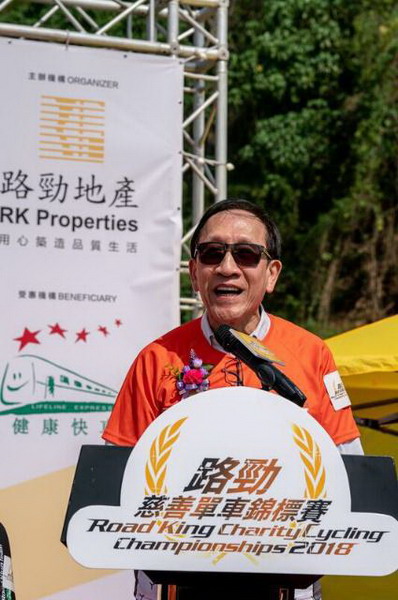路劲集团联席主席单伟彪先生致辞 路劲集团联席主席、活动筹委会主席单伟彪先生在致辞中表示:「承蒙各协办单位、政府部门、认可机构及赞助单位,以及演艺界名人的鼎力支持,加上全港市民踊跃参与,让我们成功争取首度开放元朗锦田绕道作为单车比赛赛道,让大家一起享受踩单车的乐趣。首度开放的新赛道不但为有经验的单车手带来崭新体验及挑战;而对大众来说,锦田绕道比市区道路更容易驾驭,让不同年龄、技术水平的人士都能参与其中,尽情享受单车比赛的乐趣。活动设有多个组别,如学生组、家庭组、齐齐踩以及滑步车竞赛等,我们更邀请到由前奥运港队运动员,包括亚运金牌得主黄金宝先生,参与『嘉宾名人组』;同场设有精彩的嘉年华活动及表演,大家可以一家大小参与欢度周日,与众同乐。我们希望藉此推广单车运动,鼓励香港市民积极投入健康生活,锻炼个人体魄和意志;本次赛事亦别具意义——赛事报名费会全数捐予『健康快车』火车医院筹募经费,为内地贫困的白内障患者送上重见光明的希望,而路劲地产更会配对捐款,让更多有需要人士受惠。」 健康快车香港基金主席方正先生表示:「感谢路劲地产对内地眼疾患者的关注及帮助,并将赛事报名费捐款予健康快车。『健康快车』火车医院于1997年7月展开在内地的治盲工作,致力为贫困白内障患者提供免费白内障复明手术,累计至今已帮助近二十万名白内障患者恢复视力,重见光明。健康快车近年把服务对象延伸至糖尿病患者,在内地提供免费糖尿病视网膜病变(糖网病)筛查服务,今年更把筛查服务在香港社区推行,鼓励香港市民关注定期检验眼睛的重要性,和对糖网病的认识,避免因错过治疗时机而引致视力永久受损,甚至失明。」