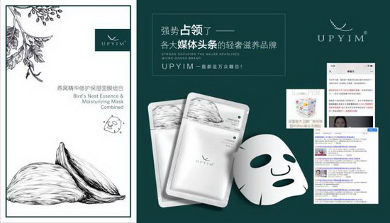 无独有偶,得到顾客认可的UPYIM翅燕,公司的面膜产品也慢慢被人们所发现;以燕窝精华ECF表皮生长因子、天然海藻保湿成分、透明质酸钠等超强补水超高保湿力的精华液,加上让肌肤加倍吸收的膜布,UPYIM面膜用品质告诉千万女性:这不仅是面膜,更是你肌肤第二次生命的唤醒! 2018年10月17号,UPYIM首次登上国内一线频道湖南卫视大荧幕,随后势不可挡,更是被全国各大卫视轮番播出,国内外60家权威媒体报道,知名公众号傅首尔力推。