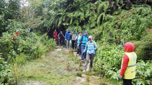 本次活动两天线路总长40公里,每天各20公里。第一天的线路相对比较轻松,路况为土路、水泥路、机耕路、景区步道路。第一天线路起点为安龙国家山地户外运动示范公园,公园的建设结合了安龙县笃山镇优质的山体条件,打造成为我国首个国家山地户外运动示范公园。第一天的线路虽然较长,但是上下坡路段并不算多,所以这一天的徒步线路还算得上轻松惬意。第二天的徒步线路虽然仍旧是20公里,但是和第一天相比,却是“路难行,难于上青天”。最窄的路段仅能容下一人通行,上下坡的幅度也比较大,算是给队员们带来了不小的挑战。