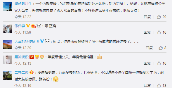 除了幸运网友,还有不少“吃瓜路人”纷纷为东航“良心”点赞。