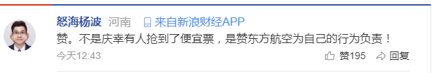 网友@糖_罐子n表示:“没想到东航居然认了。”