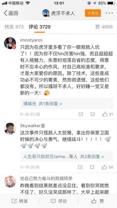 其实,比赛本身不确定的因素就很多,不求人这次虽然输了,但是,这并不能证明什么。他的人气也不会因为这样就降下来。相反,不求人对粉丝真诚的态度,反倒得到了粉丝的一致支持。