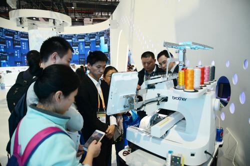 访客观看商业绣花机演示 除了产品本身之外,Brother还展示了在服务、医疗、教育、电力电信等多个行业提供的解决方案。如热敏彩色标签打印机,可以迅捷而灵敏地分辨不同的色彩,并在热敏纸上高度还原出来,更大程度发挥出标签的作用;手机智能云打印,无需下载驱动,只要将手机内的图片上传到云端,Brother内置墨仓彩色喷墨多功能一体机MFC-T910DW就能把照片打印出来,为家庭打印提供更多的便捷。