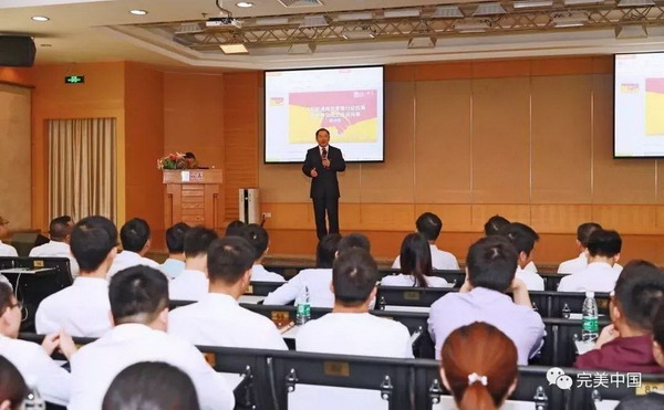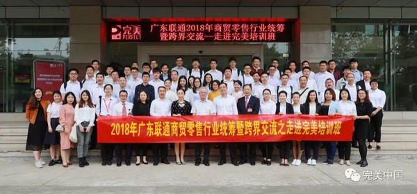 古润金董事长与广东联通一行合影 培训中,广东联通新零售中心总经理徐强作了“智慧零售·创新生态”的主题演讲,行业专家陈东雄作了直销行业信息化技术演讲。完美公司业务中心副总经理董兵介绍了完美公司的发展历程、产品系列、服务理念、公益事业,制造中心车间主任邱承海介绍了完美公司精益生产的阶段性成果和推进经验。 会后,联通公司领导及员工参观了完美公司展厅和华南生产基地。