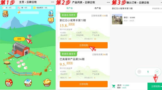 冬季来临,羊肉供不应求,现在养羊正当时!来云耕云牧,小云手把手教你来养羊,让你足不出户成为牧场主,轻轻松松赚收益! 如果你是新客户,下面的教程请收好(请注意红色小箭头): 1:你可以通过微信服务号“云耕云牧”、云耕云牧APP登陆平台; 2:打开登陆页面,需要注册账号,如下图步骤操作; 3:注册成功后,需要你进行实名认证; 4:认证成功后,为了你的资金安全,需要您开通新浪支付账户,设置新浪支付交易密码; 5:新浪账户开通后,再绑一张银行卡,仅支持本人名下的银行卡哟(绑卡需要1元充值认证); 6:现在可以买羊了,点击“首页”,然后点击“抢购”,就跳转到“产品列表”啦,点击标的可以查看详情,点击“立即抢购”可以直接购买;选好产品和数量,接下来就可以支付了,余额不足的话要先充值哟,选择一款心仪的产品吧; 7:支付完成,恭喜你已经成为牧场主!接下来,等小羊长大售出,你就可以获得收益啦!你可以在“我的”-“我的庄园”或“我的订单”查看你购买的产品,从此心中有了幸福的牵挂有没有? 现在云耕云牧有“育肥羊”、“屠宰羊”、“育肥猪”、“繁育猪”等牧产品,还有二十余种农产品,多种产品灵活选择,满足你的各种需求;电商平台更是有合作农牧场直供的各种肉类食品及绿色果蔬,天然健康无污染,你心动了吗? 中国首席商业资讯门户;更多内容请关注中国商业网各频道、栏目资讯。 免责声明:凡本站注明 “来自:XXX(非中国商业网)”的新闻稿件和图片作品,系本站转载自其它媒体,转载目的在于信息传递,并不代表本站赞同其观点和对其真实性负责 。 |