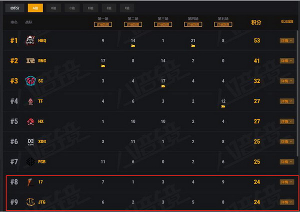 PCPI S2新科冠军17战队惊险挺进复赛,KZ 战队网 作为PCPI S2赛季新科冠军,17战队可谓是受到了玩家们的一致关注。但在五局比赛中,更换队员的17战队发挥平庸,与JTG战队同分,凭借更高排位分成功晋级复赛,可谓是有惊无险。相较于众多赞助商支持的传统强队,KZ战队则显得尤为辛酸。由于KZ战队宣告解散,Running携队友网吧打完最后一役,虽然状态较为出色,但由于排名第十无缘复赛,令人感到尤为心酸。
