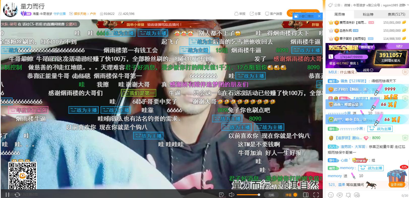 好人总是能感染身边的人,牛哥自己也是凭借着他的善行感动了无数观众和粉丝,他的寻亲团规模不断扩大,只要消息一发布,总会有来自四面八发的人找到牛哥。 现在,虽然是虎牙年度全明星战的对决时刻,但是,牛哥的直播间也是充满了正能量。在昨晚的3进2比赛中,君子固穷、梦哥和烟雨楼的多位土豪都纷纷来到牛哥的直播间帮他豪刷送礼,而牛哥也是凭借着这些大哥的支持,逆转局面,成功反超。