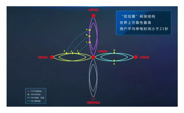 “要是我们的电网线路也能这样多条交汇,每个开关站有多个电源供电,供电不就能更稳定了嘛!”灵感降临,刘动大喜过望! 越想越兴奋的刘动不知不觉坐过了站。下了地铁,他一路快跑,迫不及待地和设计团队分享了自己的想法,大家都觉得非常可行。 随后的几天里,刘动和设计团队一起就一套全新的网架结构进行反复探讨、推演。 经过专家论证,这种网架结构兼顾了安全性和经济性,考虑了负荷的承载量,以站间联络的方式,极大地提高了供电可靠性。 刘动为这个外表瑰丽、内心坚强的网架起了一个美丽温柔的名字——“双花瓣”。