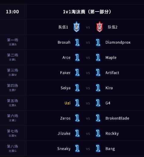 本次的全明星赛分为三天的赛程,率先开打的是欧美赛区表演赛、慈善2V2锦标赛、极限闪击模式(职业对抗)、双人共玩模式(职业对抗)、无限火力。同时,在全明星赛第一天的比赛中,还将会进行1V1淘汰赛,获得两届全明星SOLO赛冠军的虎牙签约选手UZI将会继续朝着卫冕进发。小狗的1V1排在了第五场,千万不要错过这一次的对决哦。
