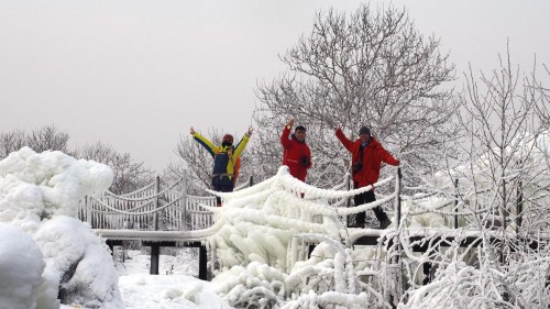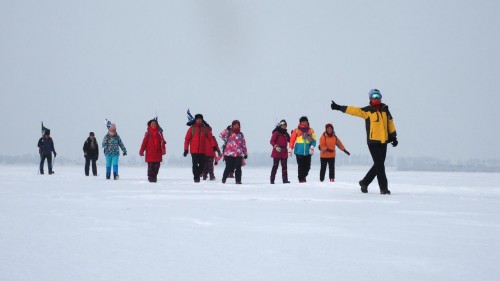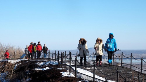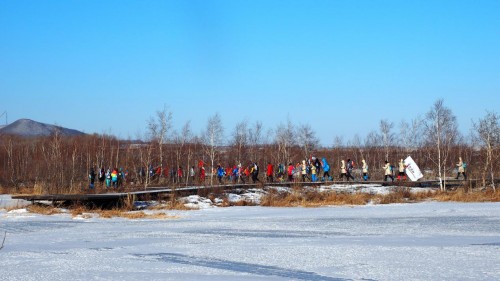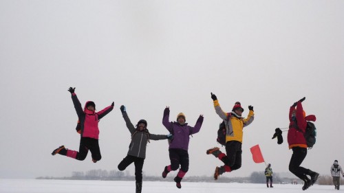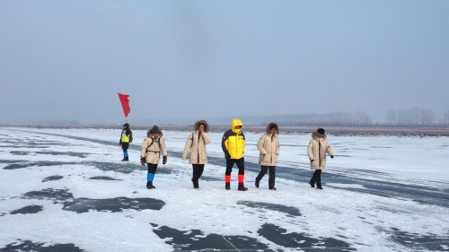 2018徒步中国·全国徒步大会五大连池风景区站第一天的线路主题为:寻冰雪快乐,全程22公里。队员们将在冬季冰冻后连成一片的五个湖泊的冰面上穿行,真正实现了五大“连”池,这样五池连穿,只有在冬季才能实现。冰湖路面虽然避免不了有人摔跤,但是独特的冰天雪地中的徒步感受还是让很多南方的队员感觉非常新鲜。“我第一次来东北这么冷的地方,感觉没那么冷,越走越热,等到了补给点我发现帽子、围巾都白了。来之前听说在冰面上行走,比较担心害怕,但今天走在上面完全和平路一样,冰上都可以跑汽车,真的很神奇”来自贵州的队员兴奋的形容。