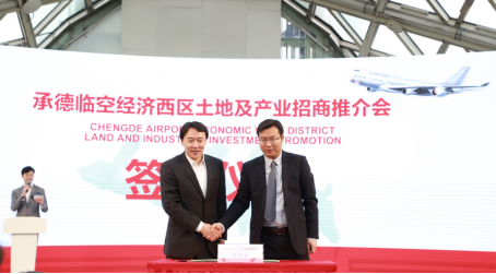 随后,参会的部分企业代表与具体负责承德临空经济西区项目的新承置地公司签署意向书。