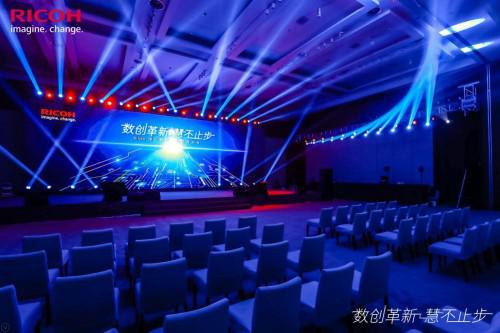 “RiNeo理光数创空间站”发布会现场 本次发布会以“数创革新,慧不止步”为主题,理光(中国)投资有限公司董事长兼总经理宫尾康士先生、理光(中国)投资有限公司市场部总经理曹昀婷女士,携手众多行业知名媒体及嘉宾,共同见证了“RiNeo理光数创空间站“荣耀发布的重要时刻,并一同探讨了智慧办公的发展之道,共话智慧办公未来新格局。