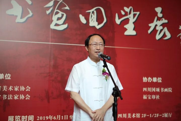 四川省文化和旅游厅副厅长王琼致辞 四川省文化和旅游厅副厅长王琼致辞中表示,王七章无论是书法还是绘画作品,都有着个人的特点,诗书画相结合也是相得益彰。