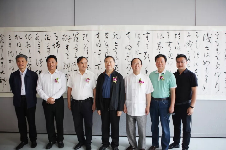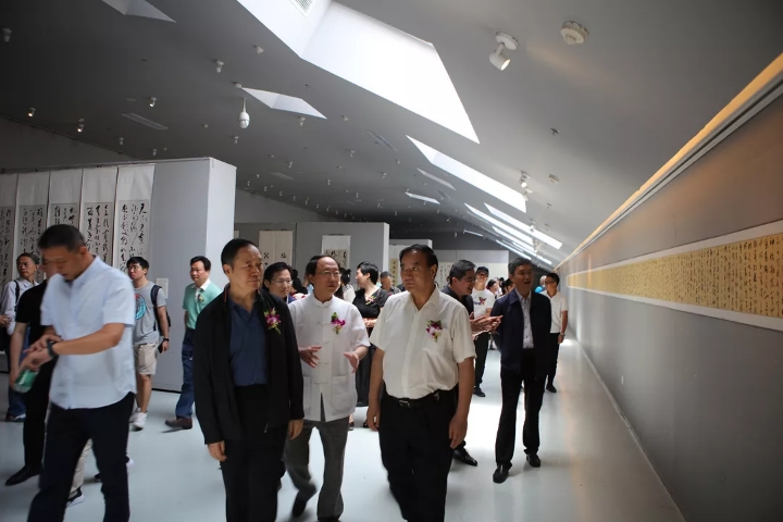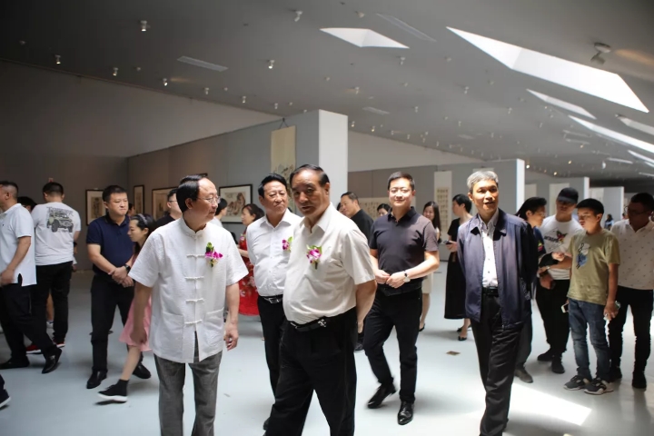 开幕式现场 出席开幕式的领导与嘉宾有:民政部原常务副部长、中央国家机关书协副主席、中国爱国拥军书画院院长罗平飞;四川省政协副主席王正荣;四川省人民政府原副省长张作哈;四川省政协原副主席曾清华;西藏军区原副司令、参谋长,西藏美术家协会副主席臧跃军;四川省文学艺术界联合会主席郑晓幸;四川省人民政府原副秘书长、北京巴蜀书画艺术院院长王七章;四川省人民政府原副秘书长、四川省老年书画研究会副会长敖玉明;四川省人民政府参事室文史研究馆党组书记、参事室主任蔡竞;四川省人民政府原副秘书长薛康;四川省文学艺术界联合会党组书记平志英;四川省文学艺术界联合会党组副书记、副主席兼秘书长,中国美术家协会理事李兵;四川省文化和旅游厅副厅长王琼;广东省监察厅副厅长张渝;四川省司法厅厅长,四川省监狱管理局局长刘志诚;四川省教育厅原厅长、四川省政协教育委员会主任朱世宏;四川省省委党史研究室主任、四川省老年书画研究会会长陈荣仲;四川省旅游发展委员会原主任傅勇林;四川省食品药品监督管理局局长崔兆全;四川省知识产权局原局长黄峰;四川省自然资源厅党组副书记、副厅长田文;四川省文化厅原副厅长王志平;四川省旅游学会会长陈加林;四川省商务厅原副厅长、北京巴蜀书画艺术院特聘艺术家李维民;四川工商学院董事长王六章;四川省监狱管理局政委陈志林;四川省监狱管理局副局长曾永忠;四川省监狱管理局政治部主任赵敏;四川省工商联原副主席王鸿璋;四川省内江市人大常委会原副主任荣光松;四川省军区原副参谋长叶文培;四川省信访局副局长刘闵莉;四川省旅发委原副主任吴勉;中国美术家协会理事,四川省美术家协会原主席阿鸽;中国美术家协会理事,四川省美术家协会主席梁时民;中国书法家协会理事,四川省书法家协会主席戴跃;著名国画家、中国和合画院院长、中南海特聘画家何学斌;中国画学会常务理事、四川中国画学会会长刘朴;四川省美术家协会副主席张跃进;四川省美术家协会副主席、成都市美术家协会副主席姚叶红;四川省美术家协会秘书长杨梁相;四川省书法家协会原副主席、顾问徐德松;四川省书法家协会副主席钟显金;四川博物院院长盛建武;四川美术馆馆长罗雪村;中共四川省委宣传部文艺处处长黄怡;四川省非物质文化遗产保护中心主任李琳;四川省文学艺术界联合会组联处处长吴彬;四川省非物质文化遗产保护中心展览部部长周祥生;锦江商会会长黄自强等近200人。罗平飞宣布展览开幕,开幕式由李兵主持。