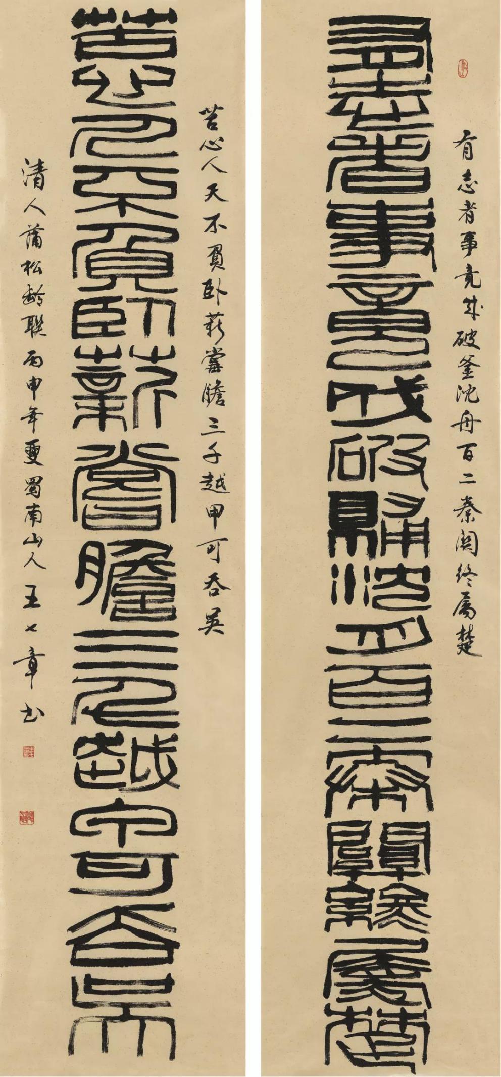 观展现场 本次展览精选王七章五十多年从艺生涯佳作两百余幅,内容涵盖书法、国画、篆刻,从七十年代的早期到九十年代的中期再至今日的后期,从初涉艺海的手稿到赏心悦目的佳作,全方位展示了王七章的艺术历程。 回顾这位政艺参半的使者半个世纪以来的艺术研习,王七章先生历任高县副县长,江安县委副书记、县 长;宜宾市委常委、秘书长,宜宾市书协副主席;内江市委副书记,内江市书协名誉主席,张大千纪念馆名誉馆长、终身艺术顾问;四川省政府副秘书长(其间两年多兼任四川驻京办主任、党组书记);四川省书法家协会第五、六届副主席,北京大学中国传统艺术文化研究所研究员、中国爱国拥军书画研究院院务委员、四川自强书画院名誉院长、北京巴蜀书画艺术院院长等职务。在繁重的政务之余,用书画艺术陶冶情操,并充分利用行政资源优势,不断弘扬祖国传统文化艺术,所工作过的地方都留下了他普及书画艺术和传统文化的足迹。也可谓,七章先生以“不忘初心、牢记使命”的乐观主义情怀,用自己的笔墨书写和描绘了勤政爱艺的人生画卷。这幅画卷充分展现了一个党的领导干部,在兢兢业业为党和人民工作的同时,在业余时间里,在追求什么,在坚守什么的人生价值观。这幅画卷,也从不同的方面见证了四川的发展和变化,见证了新中国现代化建设的辉煌历程!望即展望。展望这位诗书画印的艺术追随者承继六十余载人生感悟仍将笔耕不缀再创佳作,以身作则弘扬传统文化,孜孜不倦传承书画艺术。 部分作品欣赏 《有志苦心》联