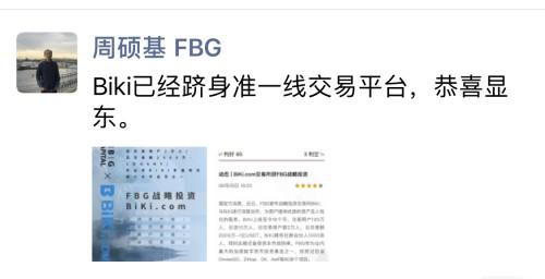 币圈的机会从不等人。行情虽总是在犹豫中前行,但市场情绪一旦被点燃,后来者根本来不及上车。如今小牛行情初现,嗅觉敏锐的项目、交易所都纷纷提前布局,而资本方们也早已按捺不住,频频向生态各方投入资金和资源。 作为国内最大的加密数字货币风投基金之一的FBGCapital,近日宣布战略投资BiKi交易所,并表示双方将在多维度展开深度合作,为用户提供更优质的资产以及更人性化的服务。对此,FBG的创始人周硕基还在朋友圈力挺BiKi,表示BiKi已经跻身准一线交易平台。 (周硕基朋友圈截图) 或许是受到利好的推动,投资者信心大受鼓舞,导致BiKi交易所的平台币的一周涨幅高达300%,让BIKI成功挤进全球十大交易所平台币的行列。 如今交易所洗牌并未停止,FBG为何会在此时布局交易所?而BiKi这家非头部交易所又是如何引得FBG的青睐?2019年属于交易所的出路又在哪里……带着这些问题我们进入下文。 一、战无不胜的“币圈高盛” FBG资本成立于2016年5月,曾获硅谷风险投资公司红杉资本的投资。不熟悉币圈资本的人可能觉得FBG听起来有点陌生,但提起它曾经的战绩,一定称得上是圈内焦点资本。 2017年,数字货币市场还没有进入爆发期,那时FBG就开始了布局,先后投资了0x、Zilliqa 、OmiseGO、IOST、Aelf等知名项目,而其中的大多数在当时的主流投资机构投资名单中并不常见。 有媒体统计,FBG那段时间投资的21个项目,破发率仅有9.5%,综合回报率高达418.6%,一些项目甚至涨了十倍、百倍,而这份成绩也直接奠定了FBG在行业中风向标的地位。 作为FBG资本的创始人周硕基,也是继币安赵长鹏第二位靠区块链登上《福布斯》封面的华人,他曾向媒体表示,希望能将FBG打造成“币圈的高盛”。 如果之前有看过FBG前期的投资分布地图,你会发现金融、公链类项目占据了大半江山,而交易所只占到4%的份额。如今已是头部交易所瓜分天下的局面,而周硕基的投资眼光在业内是出了名的毒辣,为何他会在此时选择投资BiKi这家非头部、非新晋的交易所呢? 二、BiKi并非“泛泛之辈” 其实对顶尖投资人来说,怕的不是波动性,而是错过投资的机会。 2019年宣布进军数字货币领域的正规军尤其多——Facebook、高盛、JP摩根等都已大张旗鼓地布局数字货币,加上传统媒体的大肆传播,数字货币的知名度与前两年相比早已不是同一个量级。 如果牛市再次爆发,将有大量新玩家携带资金入场,交易所作为行业食物链的顶端,将直接成为这波行情最大的受益者。任何有野心的资本方都不可能按兵不动,眼睁睁地放过交易所这个最为吸金的行业,FBG当然也不例外。 在FBG创始人周硕基的投资理念里,对项目的基本面、独创性、可持续性以及行业经验格外看中。而BiKi能成为FBG投资地图少数派的一员,定有其过人之处。笔者根据公开资料,发现在BiKi身上有两条不易复制的护城河。 第一条,优质资产的选择。 在币圈,热门资产总是自带引流特质。回顾2019年年初IEO、模式币的盛况,哪家出现热点话题的资产,市场上的投资者就会往哪家去。对于交易所来说,2019年是“用产品吸引用户”的时代,而如何挖掘更有吸引力、更优质的资产将成为一个交易所的核心竞争力。 显然BiKi交易所深谙此道,打开交易所的资产列表,能发现市场上排名前100的优质资产在这里几乎都能找到。BiKi交易所也表示,未来所有热点的项目,都会选择在第一时间上线。其实光在资产的选择上,就已经超越了90%以上的交易所。 第二条,增量市场的开发。 对交易所而言,有用户才会产生市场深度,有深度才有经历行业洗牌依旧屹立不倒的资本。即便是火币、OKEx这样大的交易所,如今也面临着增量市场开发的问题。 可以说,BiKi交易所将这一点发挥到极致,它利用像拼多多那样的“社群裂变”模式来获取大量新用户,与头部交易所的获客群体不同,BiKi获取的这波用户大多为三四五线的下沉用户,虽然他们的平均投资认知程度不及一二线城市,但优点就是量大且有投资需求,他们的进场将直接为币圈带来大量增量资金。 事实证明,BiKi选择的这条路是对的。成立不到一年的时间里,BiKi就已经做到120万注册用户,日活10万,日交易额2000万-1亿USDT,光五月份的净利润就达到1000万人民币,假以时日,BiKi完全有潜力可以赶上火币、OKEx这样的头部交易所。 BiKi交易所一边用资产吸引用户,一边开发增量市场,产品与流量齐头并进,如未来行情如愿向上,相信BiKi定能突出重围,成为一匹行业黑马,而等待着FBG的,或许是又多了一个可当为谈资的投资标的。 三、BiKi将异军突起 FBG作为币圈资本行业内的领头羊,品牌效应也将会成倍放大。战略投资消息一出,必将打破BiKi交易所过去低调的作风,收获业内一份稳定且长期的关注度。 第一,BiKi会收获大量投资者的关注。其实这一点已经表现地非常明显了,BiKi平台币在一周之内暴涨300%,就表现投资者对平台实力的认可和期待。 第二,BiKi会收获更多资本方的关注。在资本圈里,但凡有一个区块链项目得到优质资本的青睐,未来必定会有数十家投资机构蜂拥而至。 事实上,FBG也不是第一个投资BiKi交易所的,在今年早些时候,前火币联合创始人、金色财经创始人杜均宣布个人给BiKi交易所战略投资了500万美元,并且他还在朋友圈公开看好:“今年的奇迹应该属于BIKI。” 长期来看,除了关注度,这波投资将让BiKi获取更多优质的行业资源,将BiKi生态带到一