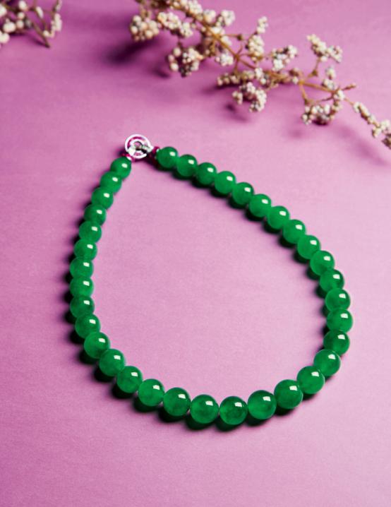 1141 天然满绿翡翠珠链 由35颗满绿翡翠圆珠串成,最大珠径约15.7mm,最小珠径约13.4mm 估价待询 |