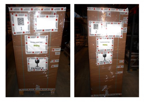 (图注:德国出口证明) 在历时将近17天的订货,打包运输及报关等准备工作后,飞机于1月3日由德国慕尼黑出发,空中飞行仅用时11小时,便顺利抵达了北京海关天竺保税区口岸。 1月6日上午,清关工作完成,海关通知提货。 1月7日中午,我们与安先生一同来到北京天竺海关。