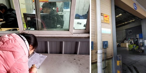 (图注:天竺海关口岸前合影) 将提货单等相关文件交给海关仓储库区门岗检查后,便可以进入海关仓储库区。