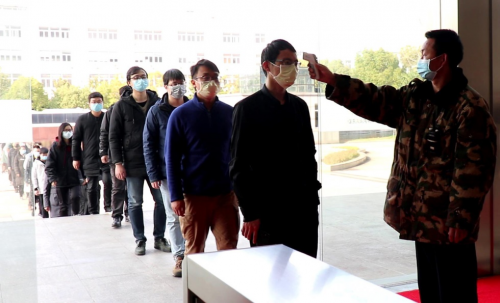 企业使用测温枪排队测体温 一名企业安保人员见有单位这样测温,连连摇头:“这可不行,这么多人排队,一分钟最多测十几个人,这要是有几百人甚至上千人、数千人的单位,后面的人都要迟到了。排在后面的员工担心迟到扣奖金,硬往前闯,保安能一个个拦下来测吗?而且让保安跟所有人这么近距离接触,感觉上也不太好。” 也有的企业选用全自动红外热成像测温设备,更加高效、精准、安全,不需要依赖检测人的工作状态,也不需要依赖被检测人的配合,有发热的人出现会自动发出警报。这套设备可在10米外快速大范围地实现人群体温监测,减少人员接触带来的感染风险,结合大数据、AI、人脸识别等先进技术可实现500人/分钟的通行效率。