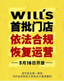 经体育局审批,3月16日,威尔仕上海11家首批门店依法合规执证恢复营业。除去上海的门店,其他地区还在和当地政府积极沟通安排并会在第一时间进行恢复营业工作。
