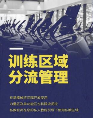 同时,训练区域也进行分流管理,有氧器械将进行隔离使用,力量区以及单功能区也进行限流把控。VIP场馆均投入芬兰龙之健医疗级杀菌空气净化器。为更智能化地为客户提供服务,还上线了APP来安全流量提示,顾客可根据红绿灯指示及时调整门店选择。