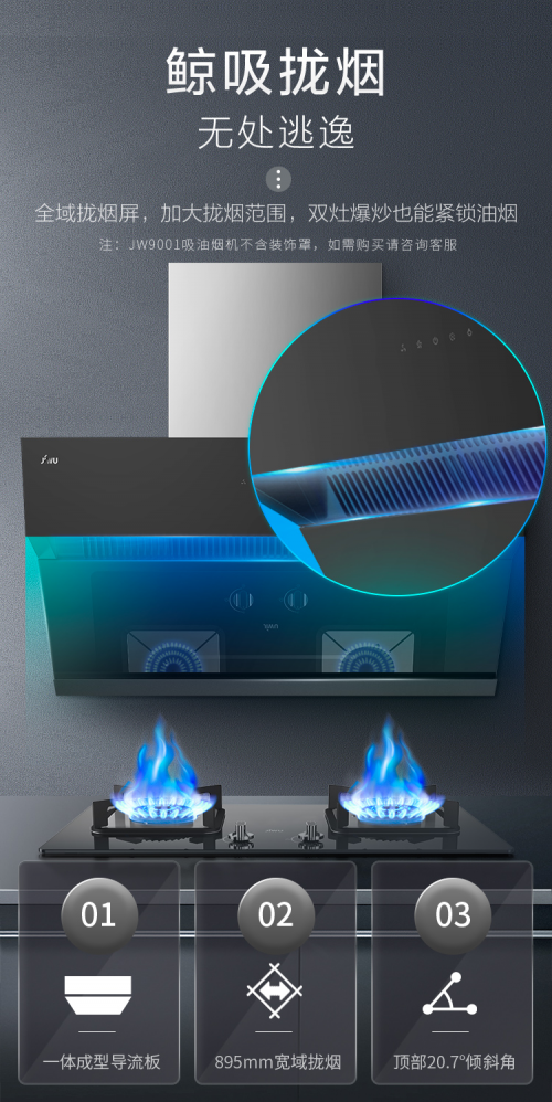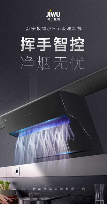 19m3大吸力 鲸吸拢烟 挥手智控,小Biu吸油烟机良心定价 中国人的饮食习惯离不开“爆炒”,使得居家厨艺大赛总是秒变烟雾缭绕的渡劫现场。如何告别油面膜侵害,你需要一台风量值够大、吸排油烟能力够强的吸油烟机,而苏宁小Biu吸油烟机·青春版必然是不二之选。在标准环境下小Biu吸油烟机·青春版的瞬间最大风量可高达19m3,超过一般烟机3m3。而两室一厅的厨房面积一般在4-5m3左右,分分钟给厨房全新换气,小Biu吸油烟机·青春版的超强吸力优秀不是一点点。当然想要厨房无烟,除了吸力够强,还要拢烟够广。新品小Biu吸油烟机·青春版加大了拢烟范围,采用了鲸吸拢烟腔设计,895mm的宽域拢烟,紧锁油烟。配合下置式风道设计,距离灶台更近,真正实现全面拢烟。一拢一吸,油烟无处逃逸。