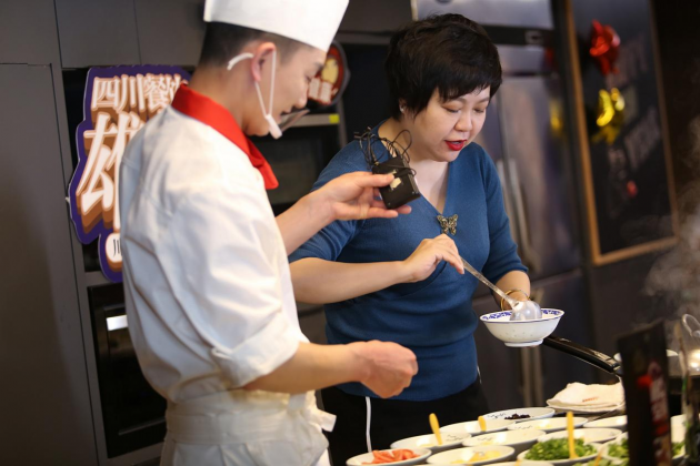 第一轮美食赛由罗小刚和万喜分别携麻辣空间无渣清油火锅底料和川味清油火锅底料进行pk,现场更有给力粉丝一次性购入50袋底料对本次公益活动予以支持。