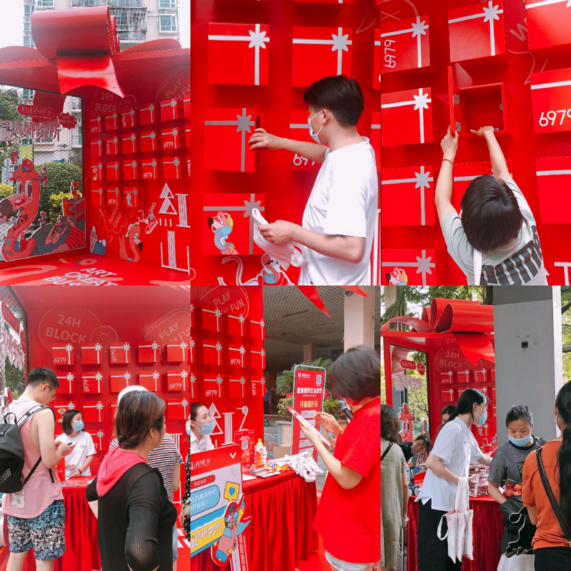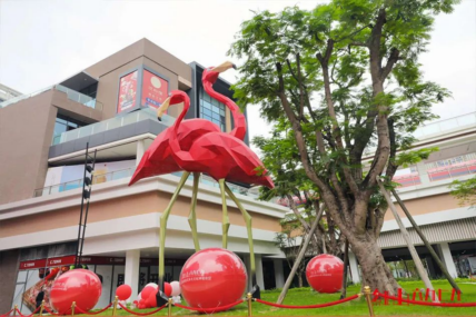 目前,已集结200+前沿品牌、50+首店,四大文化艺术馆以及华南首家自主运营开心麻花剧院、盒马鲜生、CGV影院三大主力店,打造城市全新商业矩阵。 同时,在当今网红、IP盛行时代,红山6979独家打造了原创IP——火烈鸟。 红山6979火烈鸟IP以优雅前行的独特气质,热烈鲜红的色彩设计,以及天鹅颈、大长腿的形象,屹立在红山6979的下沉广场,势必成为街区网红打卡点。 在启幕前夕,红山六九七九围绕周边社区开展了一系列好玩有趣的欢享活动;红山新晋网红火烈鸟带着6979个神秘礼盒分别去到了世纪春城、金地梅陇镇、风和日丽家园、丰润花园,现场吸引了无数市民前来拆盒打卡!有人领取到了精美的火烈鸟IP大礼包,有人收获了各类品牌商户的专属优惠券....每一个人都带着礼物满载而归!不仅如此,现场的大小朋友们纷纷汇聚在红色礼盒下,开启了各种凹造型的拍照打卡,为大家带来了惊喜纷呈的互动体验。