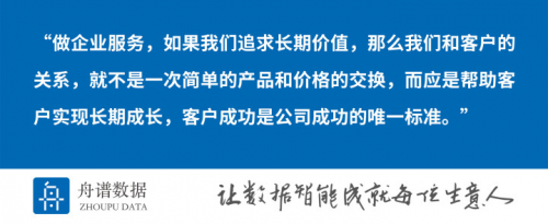 据了解,舟谱数据客研院同时兼具研究和服务两大职能。在研究领域,由长期为经销商运营提供指导和顾问的涂超担任首席专家,聘用知名管理学者邓勇兵博士出任首席管理专家,同时聚焦于经销商企业的核心竞争力和管理力。在服务领域,舟谱数据客研院拥有一支数十人的专业顾问团队,为客户提供深入的运营分析和运营指导,从而切实改善经销商企业的核心竞争力,提升经销商的管理能力,为经销商应对未来竞争提供坚实保障。 关注庞大的经销商群体 一直以来,中国庞大的快消品经销商都是被漠视的群体,他们在保障民生、活跃经济、促进就业中起着不可或缺的作用,但他们总是被贴上“效率低下”的标签,关于他们的真实效率如何,又该怎样提升和改进,却没有人进行深入研究,并提供应对的办法。 直到新零售开始侵入更广阔的线下零售时,才更多人注意到经销商群体低效而顽强的存在。新旧势力一番较量之后,便进入一个“干不掉,改不动”的尴尬局面。新势力没法干掉经销商,想拥抱他们,却又不知该如何下手。 舟谱数据自成立以来,就以服务经销商为立场,伴随经销商成长了四年多,累积拥有近万家经销商客户。舟谱数据凭借丰富的数据和客户调研,形成了从管理优化,交易优化,仓配优化,到决策优化的全面解决方案。 凭借数据和客户优势,舟谱数据正在形成一套清晰的经销商竞争力模型,为经销商的转型升级提供稳健基础。 将客户成功视为公司成功的唯一标准 “做企业服务,如果我们追求长期价值,那么我们和客户的关系,就不是一次简单的产品和价格的交换,而应是帮助客户实现长期成长,客户成功是公司成功的唯一标准。”舟谱数据联合创始人,舟谱客研院院长邹文标如此说道。一个良好的客户成功计划应该贯穿客户流程的每一步,从产品研发开始,由售前到售后,并在更久远的未来不断创造价值。