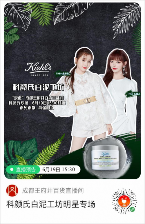 人气明星助阵 十店联动超强阵容直播带货 6月19日,国际化妆品牌科颜氏作为“王府井集团超级品牌节”的首发品牌首个亮相,特邀《青春有你2》成团组合THE9人气成员虞书欣、孔雪儿空降启动仪式主会场——成都王府井百货直播间,为粉丝们赢取福利并分享自己的日常护肤秘籍。