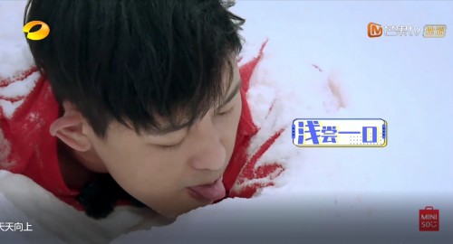 第二站,哥哥们挑战了“卤水漂浮”项目。作为大哥的孙耀威第一个下水体验,高密度的卤水立刻让孙耀威漂了起来,紧随其后的周艺轩却差点失足落入水中。最后UP7全员成功漂起,在水面上摆出了个大大的“7”字。