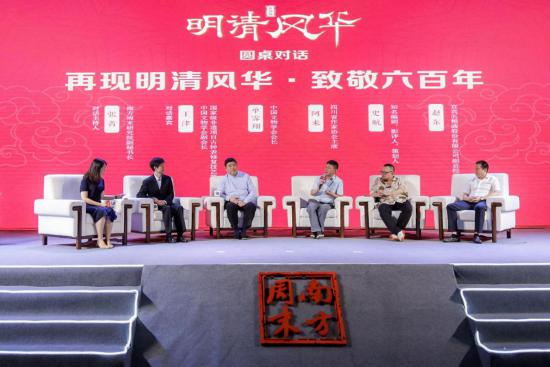 图为圆桌对话现场 N-TALK是由南方周末主办的大型品牌活动,此次N-TALK“明清风华”专场作为五粮液携手南方周末打造的《传统与传奇:顶尖博物馆探访计划》线下活动版块,围绕“共敬600年”,与非遗传承人、文化名人一道,探寻明清文化的雅致与极致。