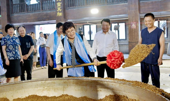 同是非物质文化遗产传承人的刘兰芳对洋河的酿酒师傅们很是关切。看着酿酒师傅们拌粮、装甑,刘兰芳也忍不住拿起铁锹体验了一把,发现一锹下去光是抬起来就已经很是费力,更别说还要把拌料均匀地铺洒在甑桶里。原来想要熟练掌握装甑这门绝技,在潇洒随意中兼顾“轻、松、匀、薄、准、平”,做到16个动作2秒内一气呵成,至少要经过数十年的磨炼。这些酿酒师傅们的工龄都在20年以上,他们一部分是罗氏酿酒技艺传承人,还有一部分是从三万苏酒人中通过技术比武层层精选出来的老匠人。刘兰芳拍了拍酿酒师傅有力的胳膊,感慨到,“美酒好喝,酿酒不易”。
