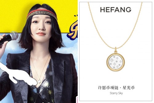 周迅老师在乐队的夏天中每一套造型都超美,特别爱这套摇滚女孩LOOK,波点长裙配帅气皮衣,戴上一枚HEFANG的星光币项链,又酷又飒,惊喜满满。