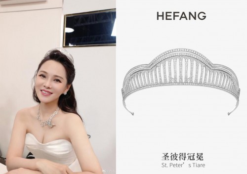 《乘风破浪的姐姐》伊能静 伊能静姐姐身穿立体花朵抹胸蓬蓬裙,简约大气的设计裁剪把她迷人的锁骨和肩线衬托得超完美,戴上HEFANG的圣彼得冠冕和雪境项链,在舞台上时刻闪耀着暖暖的光芒。