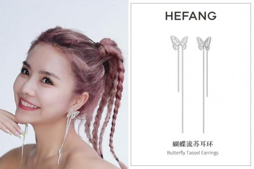 《非日常派对》安琦 有着长长流苏的HEFANG蝴蝶流苏耳环垂坠在肩颈线和锁骨间,搭配性感抹胸群,尽显美美的肩线,小辣椒安琦真的又帅又魅,自信的样子谁不爱!