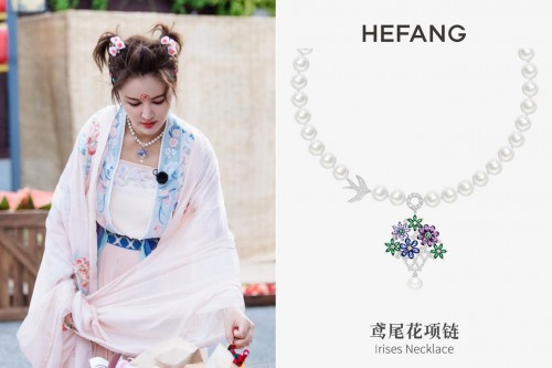 HEFANG鸢尾花项链搭配出别样古风LOOK,穿上汉服,瞬间变身元气满满的公主。