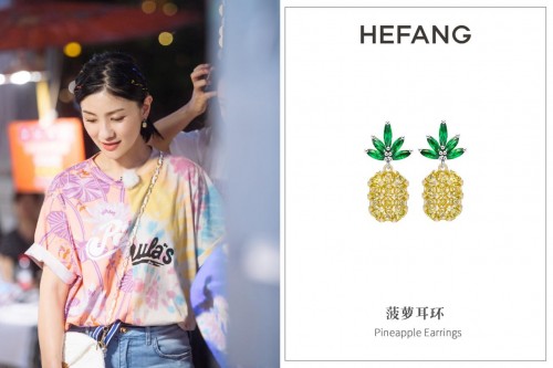 时髦扎染TEE搭配鲜甜多汁的HEFANG家超级经典的菠萝耳钉,开启度假模式!